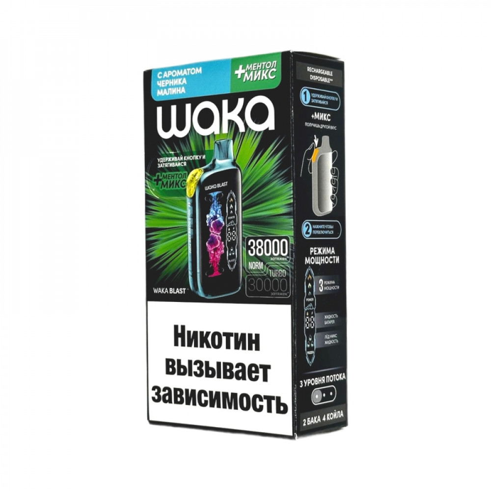 WAKA BLAST 38000 Hard - Черника малина + ментол микс - купить в Строителе